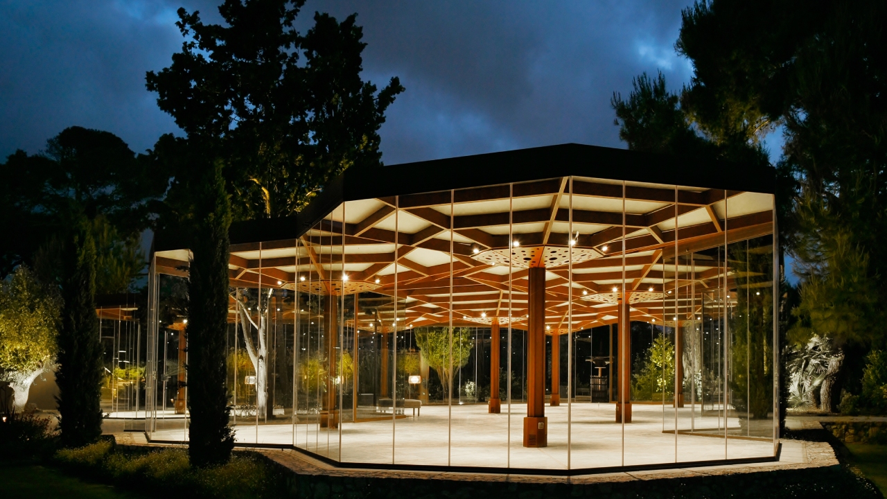 - Dado: con este proyector técnico se proporciona iluminación general a toda la superficie bajo la pérgola, una de las zonas principales donde tienen lugar los banquetes y las fiestas;