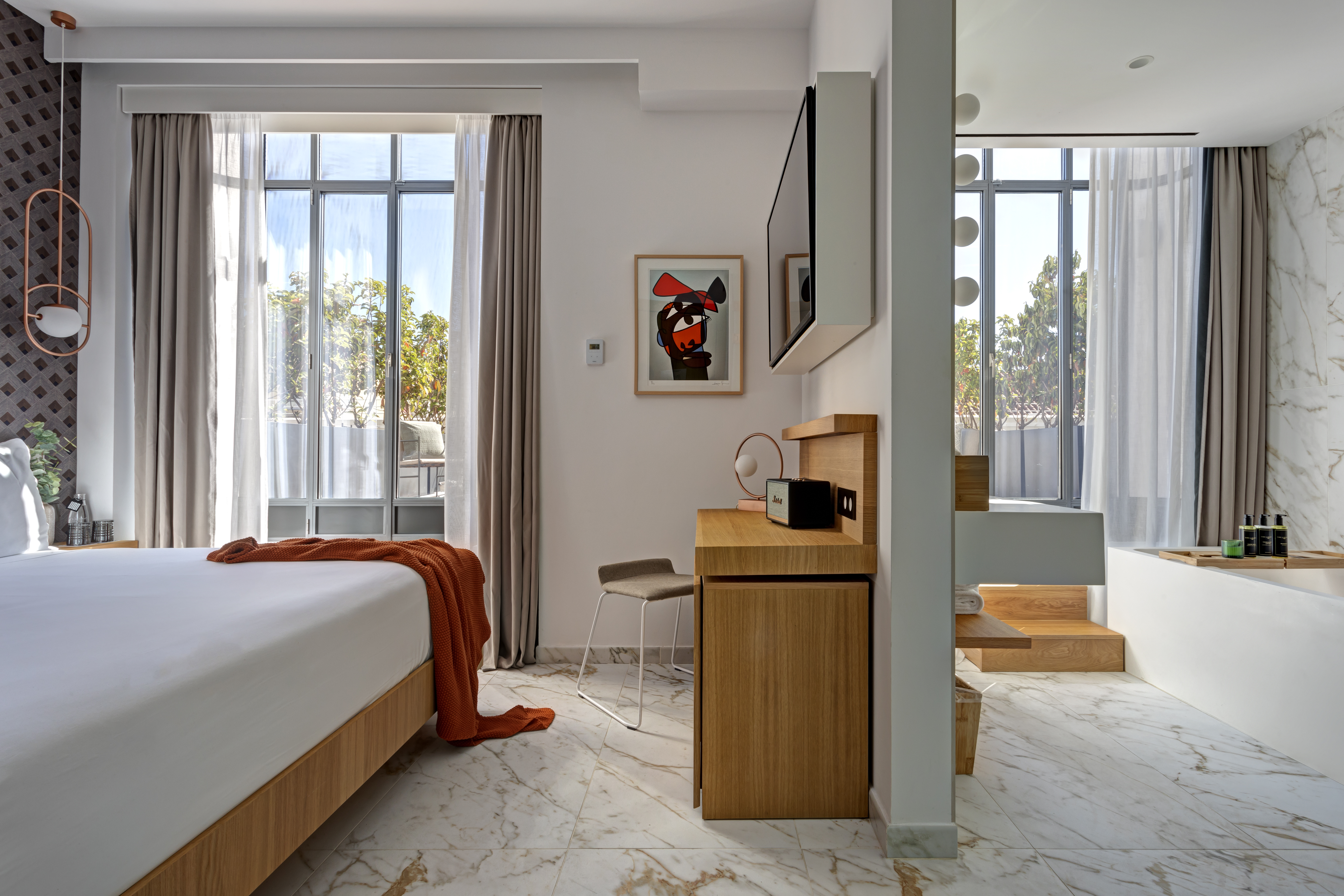 Un desarrollo integral de la iluminación técnica y decorativa en distintas áreas del hotel, incluyendo zonas comunes, habitaciones y parte del emblemático Teatro Albéniz. Este proyecto se concibió como una combinación armónica de diseño, funcionalidad y personalización.